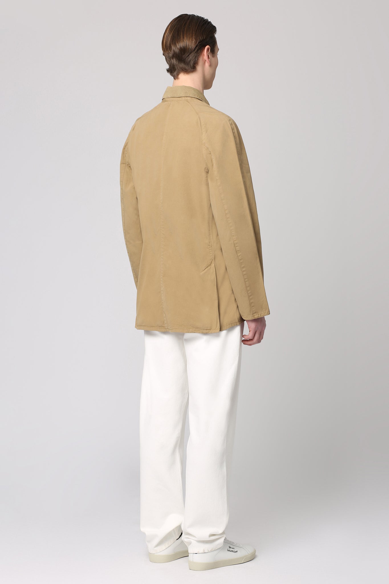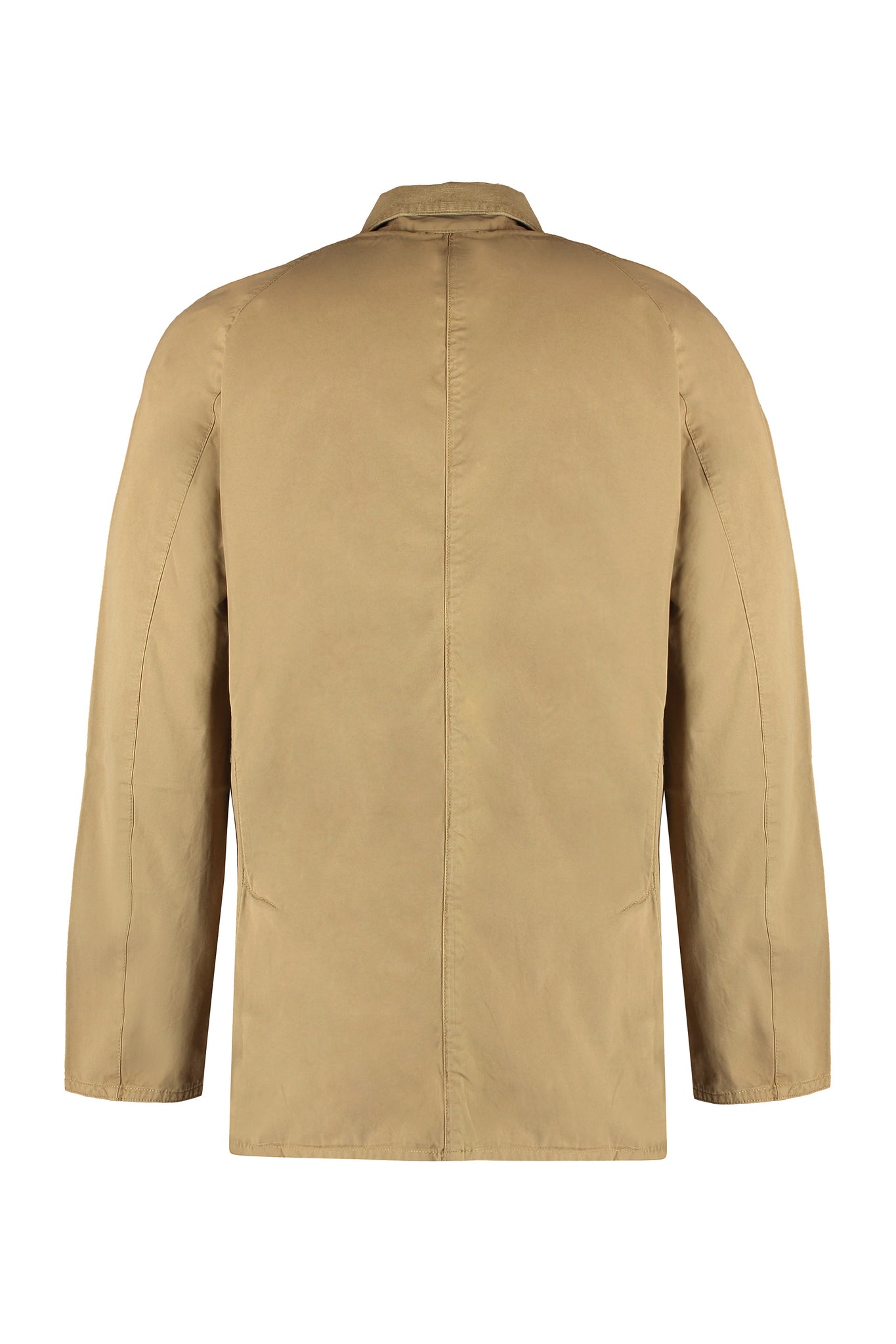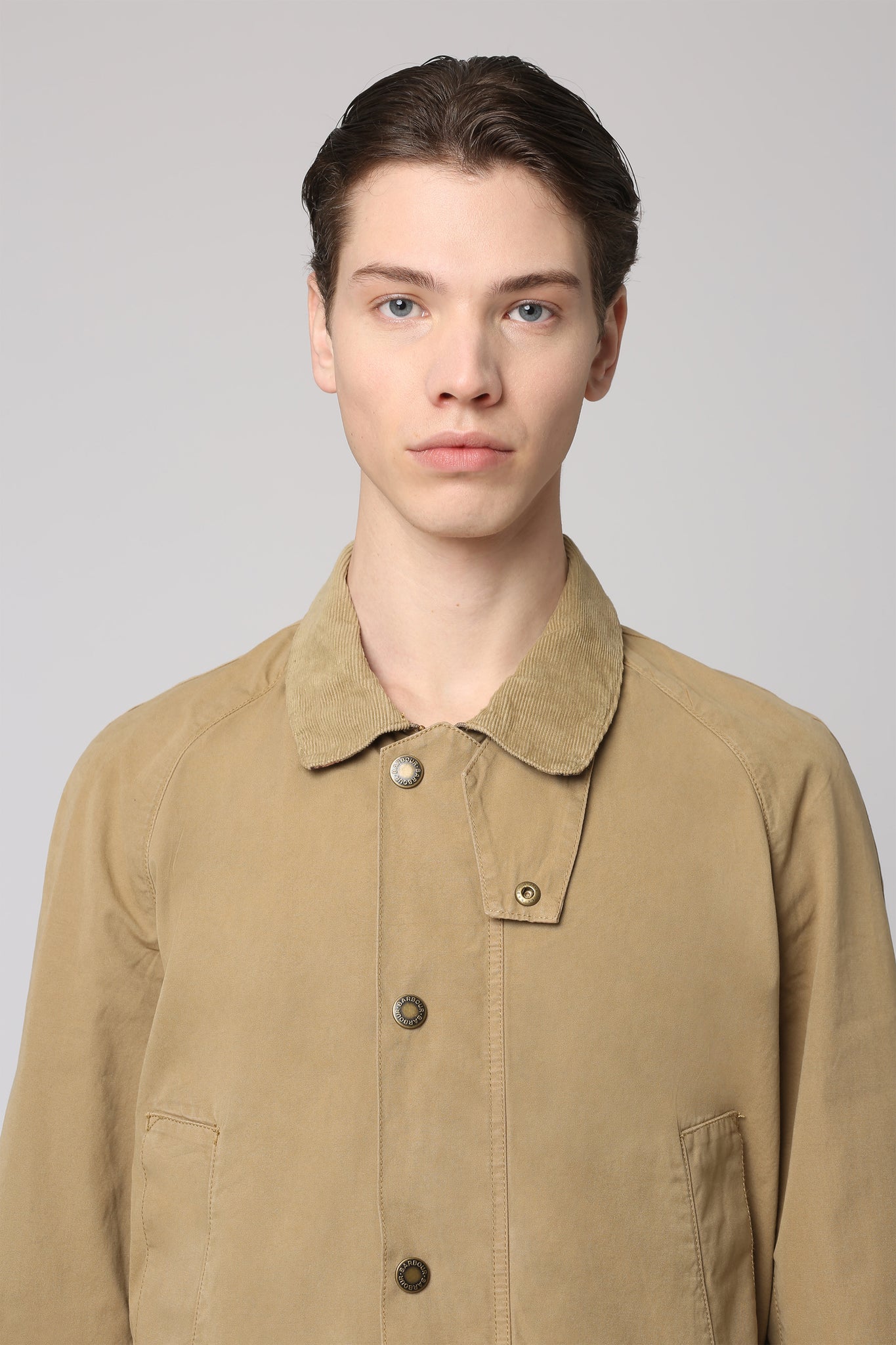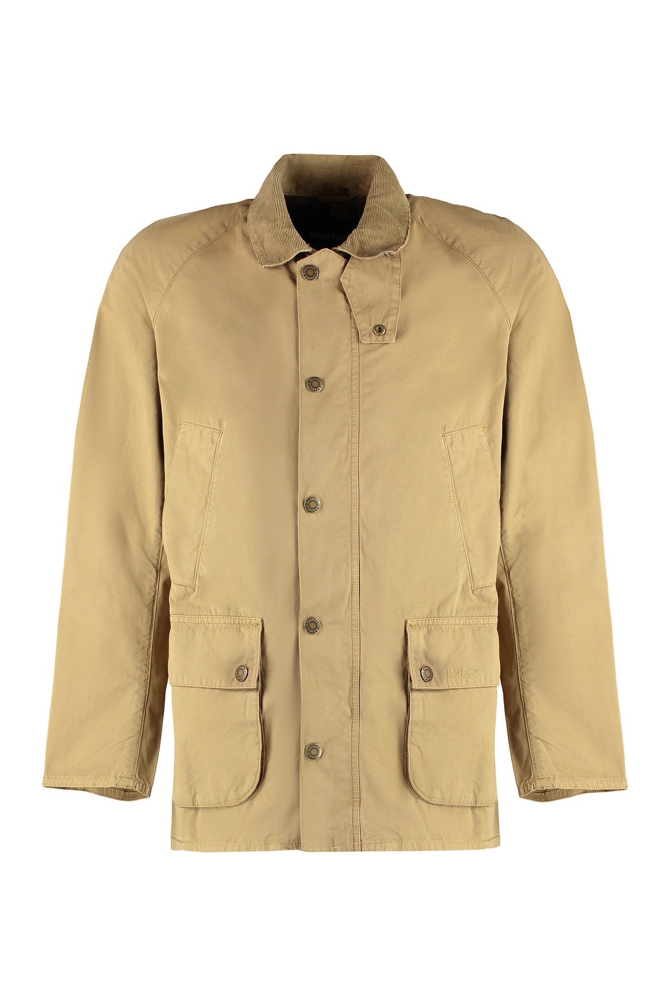 The Ashby Casual cotton jacket by Barbour features a ribbed collar and practical hand warmer pockets. With two buttoned front flap pockets, it offers both style and functionality. Made from 100% cotton, this raincoat and windbreaker is a versatile addition to any wardrobe.